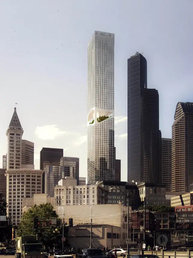361米! 西雅图摩天大楼中间被挖一个“巨洞”