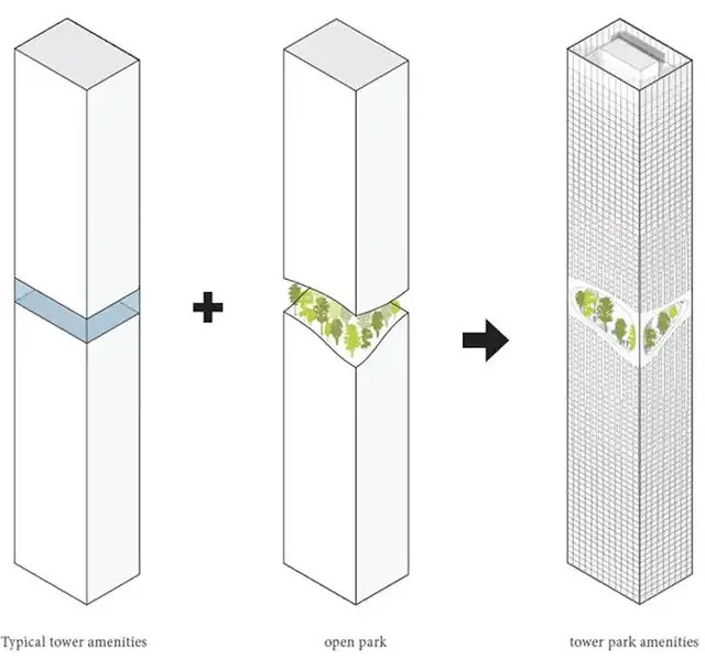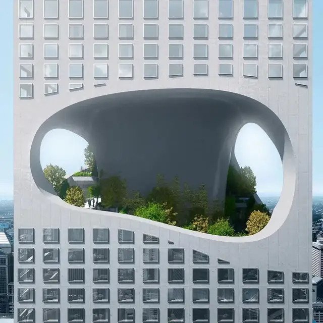 一座由ODA New York设计的361米超高住宅楼,试图在城市天际线中植入一片“可呼吸”的空间。它不仅仅追求物理高度,建筑师更强调并体现了在密集城市中具有室外空间的住宅的重要性,探索塔楼设计的全新可能,重新定义居住与自然的关系。
